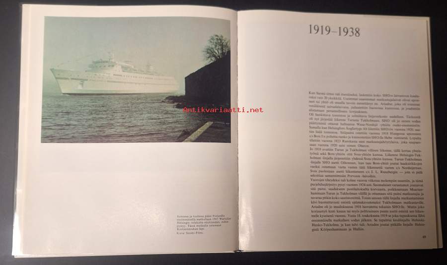 Liitteet tallella kirjan takaosassa, vaikuttavat avaamattomilta. Paljon aikalaiskuvitusta mm. matkalipuista ja mainoksista. Lopussa luettelo käytössä olleista Suomen Höyrylaiva Osakeyhtiön aluksista faktoineen.