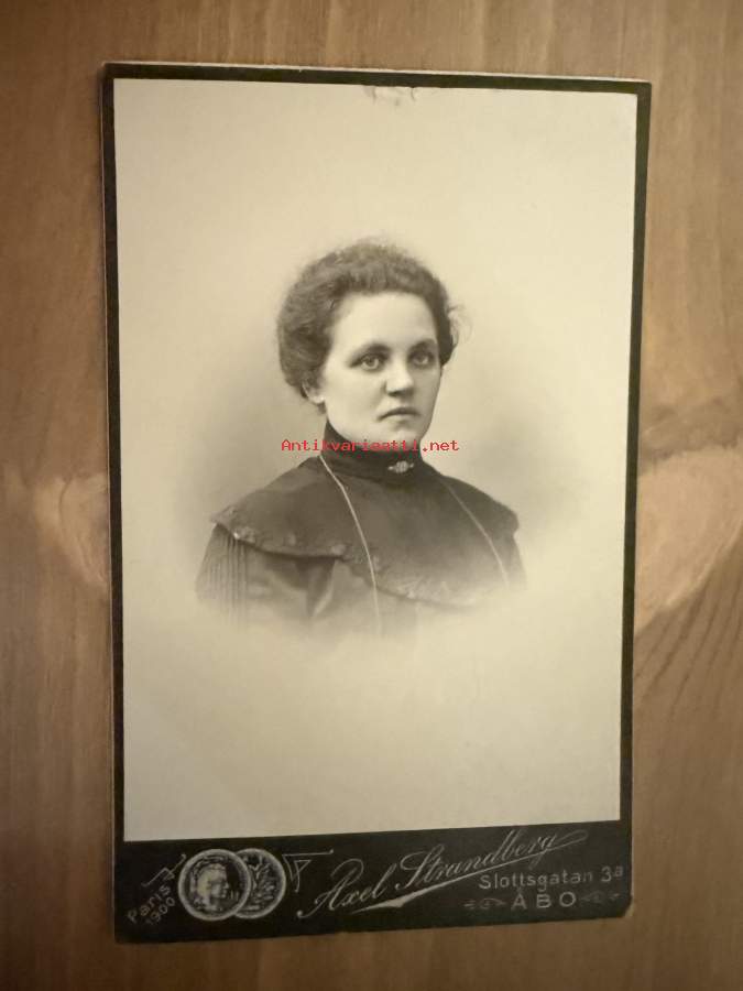 Valokuvaamo A. Strandberg, Turku -visiittikorttivalokuva. Rintakuva nainen.