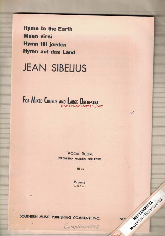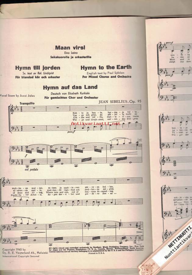 Op. 95 Maan virsi sekakuorolle ja orkesterille = Hymn till jorden = Hymn to the earth = Hymn auf das land