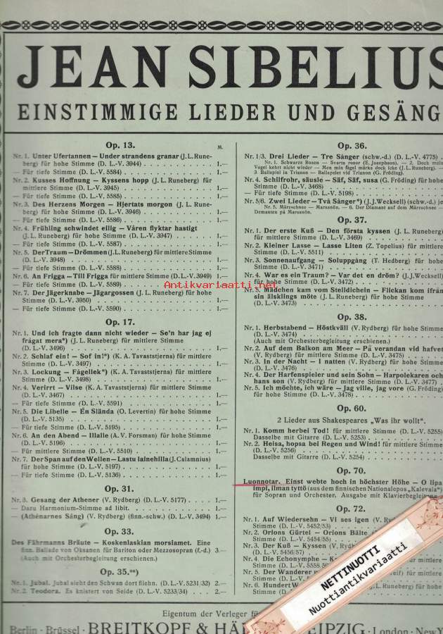Olipa impi ilman tyttö...Tondichtung für Sopran och Orchester.-Postipaketti