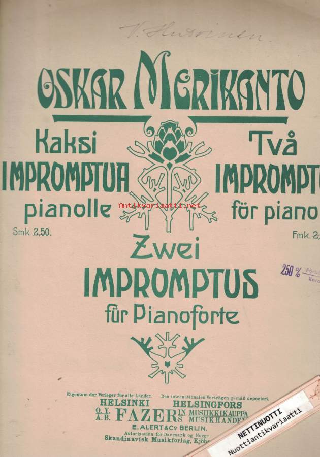 Kaksi Impromptua pianolle = Zwei Imoromptus für Pianoforte = Två Impromptus för piano