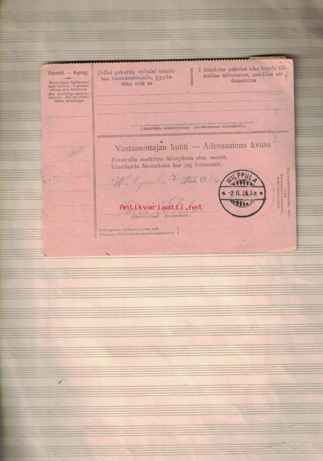 Postiennakko-osoitekortti Tampere - Wilppula