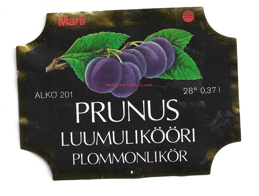 Prunus luumulikööri alko nr 201 liköörietiketti viinaetiketti