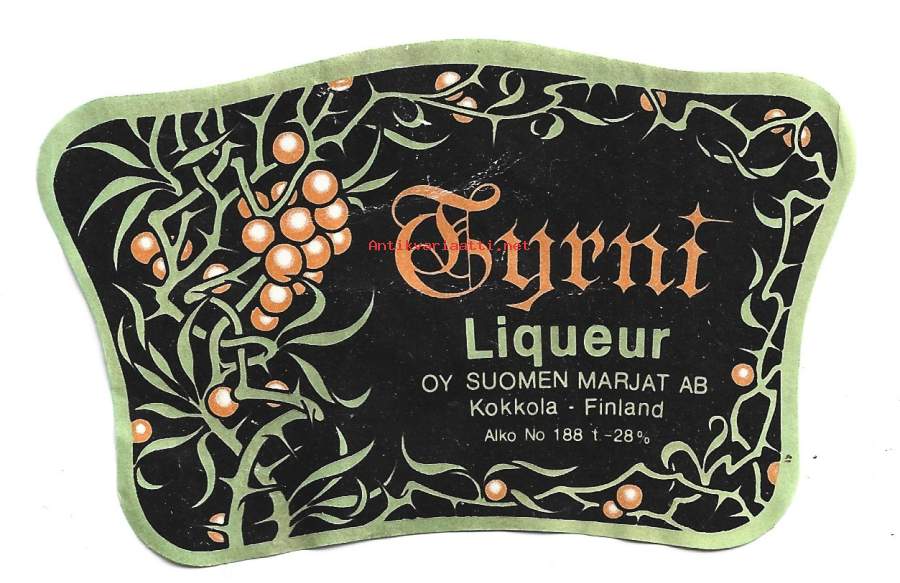 Tyrni Suomen Marjat KokkolaAlko nr 188 - liköörietiketti viinaetiketti