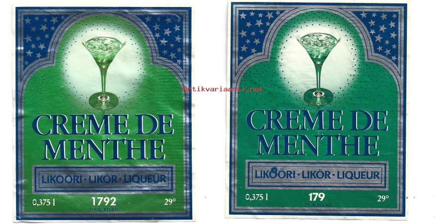 Creme de Menthe Minttulikööriv nr 179 ja 1792 liköörietiketti viinaetiketti 2 eril