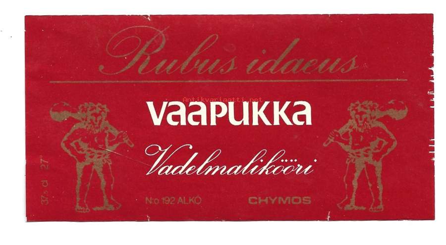 Vaapukka vadelmalikööri Alko nr 192 liköörietiketti viinaetiketti