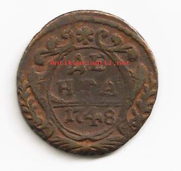 Venäjä 1 Denga 1748 Elisabet- kolikko