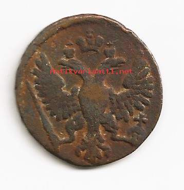 Liikkeeseenlaskija Venäjä › Venäjän keisarikunta (1547–1917) Keisarinna Anna I (Анна I) (1730–1740)Elisabet (1741–1762)Keisari Ivan VI (Иван VI) (1740–1741)Tyyppi VakiokiertokolikotVuodet 1730-1754Arvo 1 Denga (1 Деньга) (0.005)Valuutta Rupla (1700–1917)Koostumus KupariPaino 8,19 gHalkaisija 25,5 mmPaksuus 2,05 mmMuoto KierrosSuuntaus Mitalien kohdistus ↑↑Demonetisoitu KylläNumero N#11217ApuaViitteet KM# 188