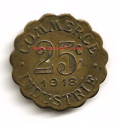 Chatou Ranska 25 c Kauppa ja teollisuus 1918 - poletti 28 mm