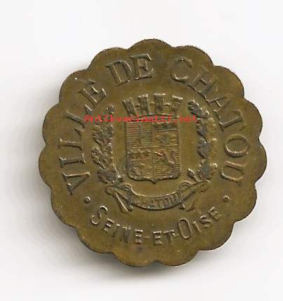 Chatoun kunnan (Commune of Chatou) 25 centimes -kolikko Ranskasta.