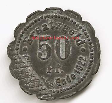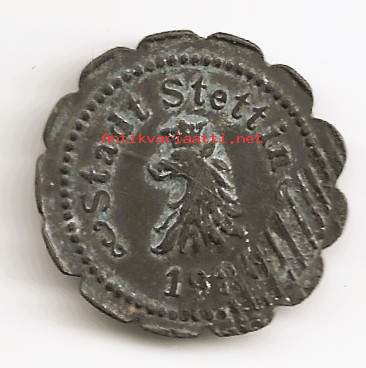 Kyseessä on Stettinin kaupungin (nykyisin Szczecin, Puola) liikkeelle laskema 5 pfennigin hätävaluutta (Notgeld). Nimellisarvo: 5 pfennigiäLiikkeeseenlaskija: Stettinin kaupunkiTyyppi: Hätävaluutta (Notgeld)Materiaali: Metalli