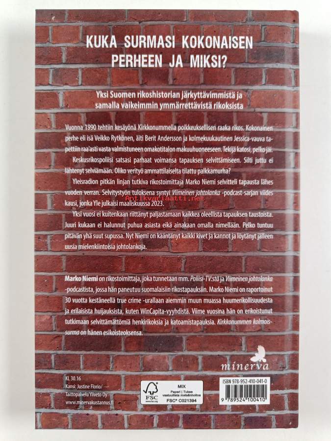 Alkuteos: Kirkkonummen kolmoissurma.Asiasanat: historia, henkirikokset, esitutkinta, perheet, selvittämättömät rikokset, tappo