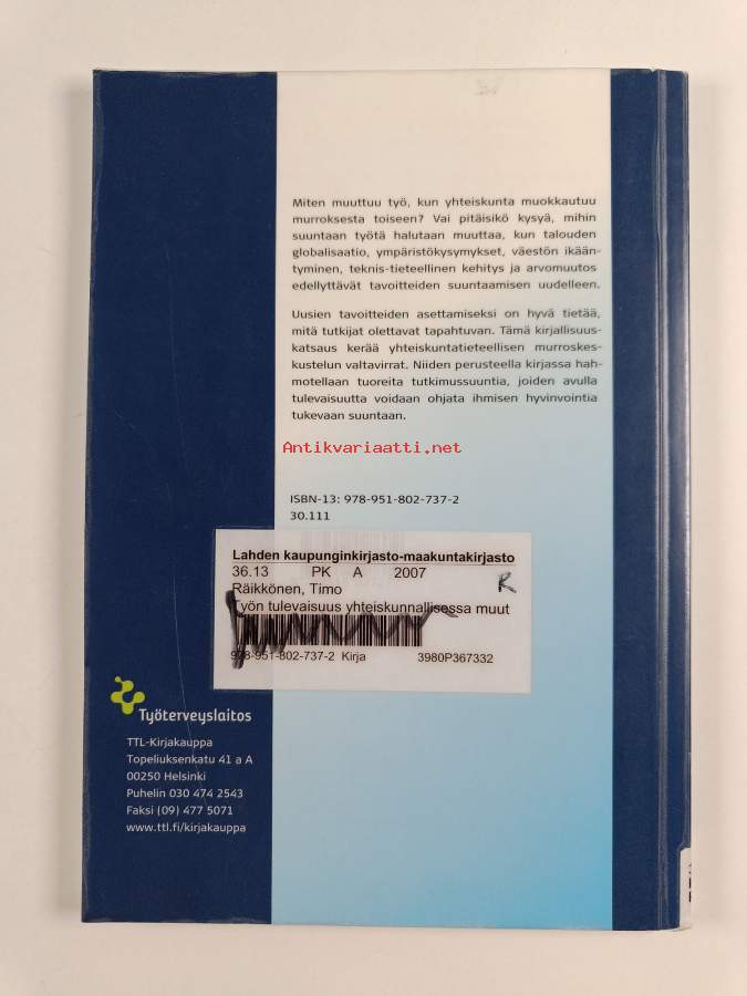 Asiasanat: tietoyhteiskunta, työelämä, rakennemuutos, tulevaisuudentutkimus, muutos, yhteiskunnallinen muutos, tulevaisuus, teknologinen kehitys, työ, teknologia, globalisaatio, kehitys, työkulttuuri, work, culture, Occupational Health, Employment, Organizational Culture, Forecasting