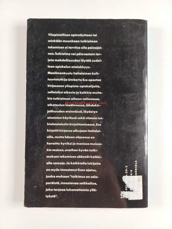 Muu(t) tekijä(t): Pia MänttäriMerkinnät: omistajamerkintä (leima)Alkuteos: Come si fa una tesi di laurea