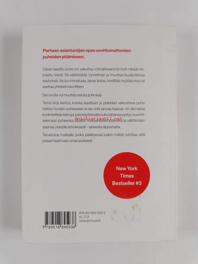 Muu(t) tekijä(t): Veli-Pekka (suom.) KetolaAlkuteos: Ted talks : The Official TED Guide to Public SpeakingAsiasanat: puhetaito, puheet, puheviestintä, suullinen ilmaisu