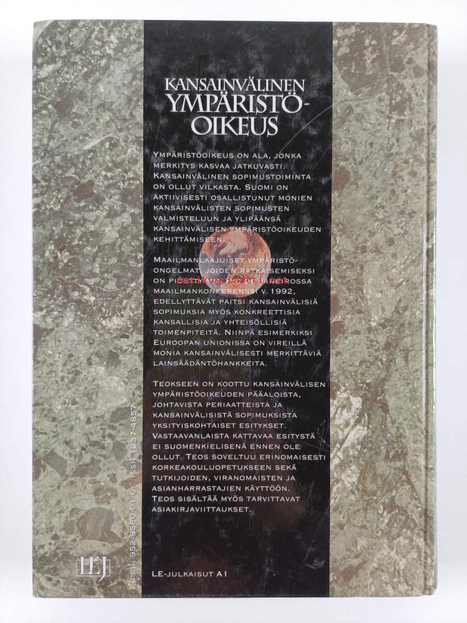 Muu(t) tekijä(t): Erkki J. Hollo, Juhani ParkkariMerkinnät: omistajamerkintäSarja: LE-julkaisut. A 1; Suomen ympäristöoikeustieteen seura ry:n julkaisuja 23; Acta Societatis Fennicae iuris gentium. B 5; Suomen ympäristöoikeustieteen seuran julkaisuja 23Asiasanat: sodat, lainsäädäntö, kansainväliset sopimukset, kansainvälinen yhteistyö, ympäristöpolitiikka, ympäristönsuojelu, meret, luonnonsuojelu, metsänhoito, luonnonvarat, ilmastonmuutokset, kalastus, kulttuuriperintö, museoala, suojelu, konfliktit, kestävä kehitys, ympäristövaikutukset, vesiensuojelu, ympäristö, ympäristöoikeus, kansainvälinen oikeus, naapuruus, eurooppaoikeus, maankäyttö, meriensuojelu, ilmansuojelu, kansainvälinen ympäristöoikeus, jätehuolto, satelliitit, oikeus (oikeudenala), krig, miljö, skyddande, miljöskydd, konflikter, kulturarv, lagstiftning, Natural resources, internationell rätt, vattenskydd, fiske, environmental policy, hållbar utveckling, museibranschen, International, kansainvälinen, internationella överenskommelser, skogsskötsel, naturskydd, europarätt, miljöeffekter, markanvändning, satelliter, naturresurser, öljyvahingot, miljöpolitik, miljörätt, internationell miljörätt, internationellt samarbete, havsskydd, hav, luftvård, oljeskador, rätt (rättsområde), klimatförändringar, grannförhållande, avfallshantering, kansainvälinen ympäristönsuojelu