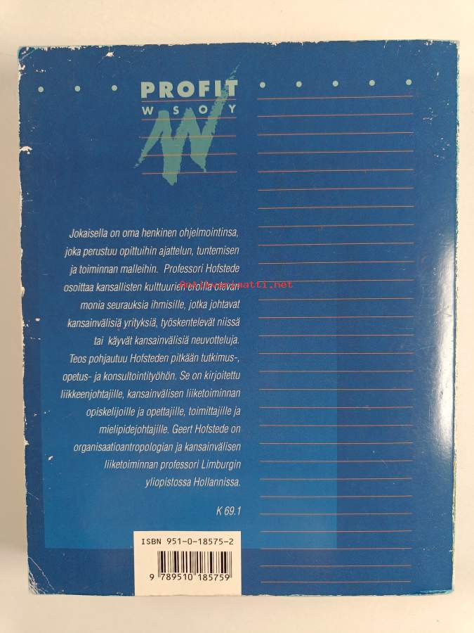 Muu(t) tekijä(t): Ritva LiljamoSarja: ProfitAlkuteos: Cultures and organizationsAsiasanat: psykologia, johtaminen, yrityskulttuuri, kansainvälinen yhteistyö, työyhteisöt, tasa-arvo, organisaatiot, kansat, kulttuurierot, kansainvälinen vertailu, organisaatiokulttuuri, psykologi, organisationer, jämställdhet, ledarskap (verksamhetsledning), kulturskillnader, internationell jämförelse, internationellt samarbete, folk (befolkningsgrupper), företagskultur, arbetsgemenskaper, organisationskultur