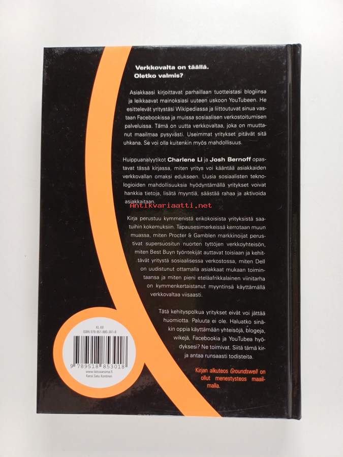 Muu(t) tekijä(t): Maarit Tillman, Josh Bernoff ym.Sarja: Business booksAlkuteos: Groundswell : winning in a world transformed by social technologies.Asiasanat: verkkokauppa, markkinointi, Internet, verkkomainonta, asiakkaat, yritykset, yritystoiminta, valta, verkostot, yritysstrategiat, sosiaalinen media, viestintä, vaikuttaminen, osallistuminen, tietoverkot, blogit, uusmedia, strateginen suunnittelu, yhteisöviestintä, verkkoyhteisöt, verkkoliiketoiminta, asiakkuus, hyöty, Facebook, Web 2.0, merkitys, YouTube, wikit, hyödyntäminen, digitaalinen media