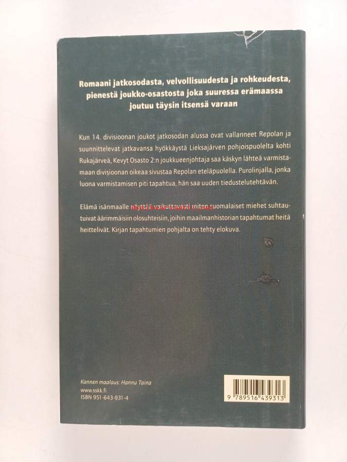 Hyvä. Tarkempi kuntoluokka: K3+ ; Selkämyksessä hieman vinoutta. Kansipaperin kunto: joitain repeämiä/kulumaa