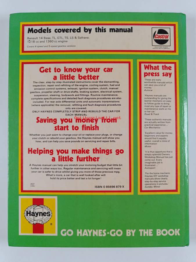Renault 14 Owners Workshop Manual - Models Covered : Renault 14 Base, TL, GTL, TS, LS and Safrane 1218 Cc and 1360 Cc