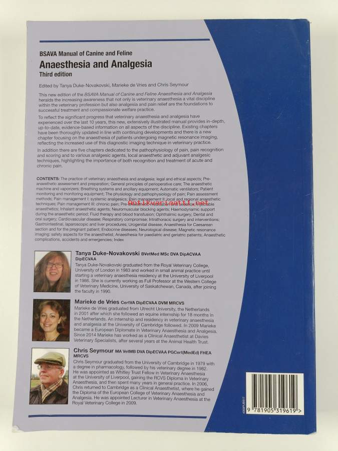 Koko nimi: BSAVA manual of canine and feline anaesthesia and analgesia - British Small Animal Veterinary Association manual of canine and feline anaesthesia and analgesia - Manual of canine and feline anaesthesia and analgesiaMuu(t) tekijä(t): Chris Seymour, Tanya Duke-Novakovski ym.Merkinnät: omistajamerkintä (leima)Asiasanat: Veterinary anesthesia