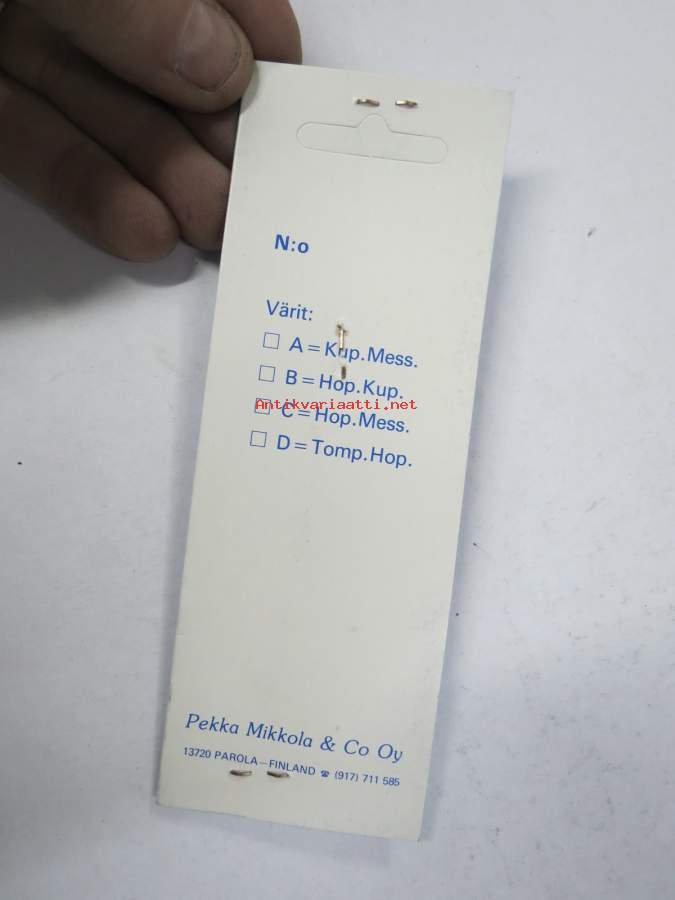 Alkuperäinen "Otto" - Pekka Mikkola & Co Oy, Parola -pilkki, hopeanvärinen, käyttämätön, alkuperäispakkauksessaan