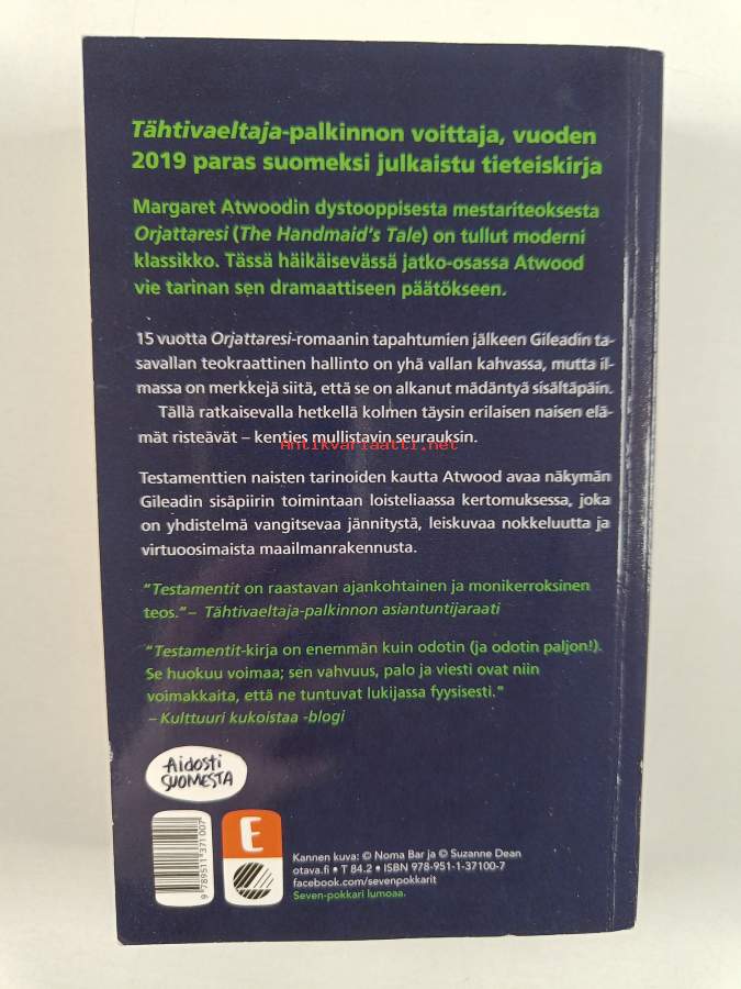 Muu(t) tekijä(t): Hilkka PekkanenSarja: Seven; Otavan kirjasto 273Alkuteos: The TestamentsAsiasanat: handmaid's tale