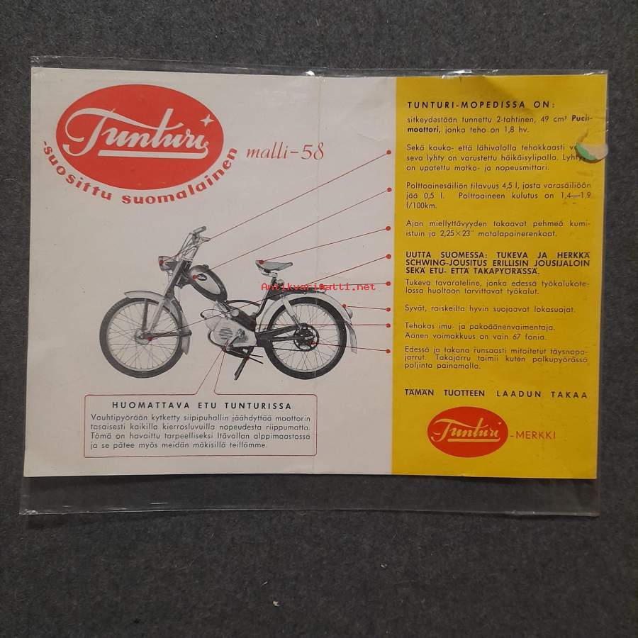 Tunturi malli-58 -esite, myyntiesite autoesite mopoesite