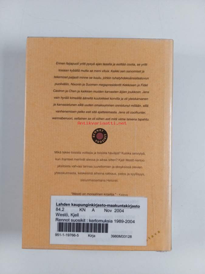 Rennot suosikit, 2012. Kertomuksia 1989-2004. Takaiskuja, kipeitä kokemuksia, hulluja tilanteita. Osuvia kertomuksia nykypäivän menestyjistä ja häviäjistä. Novellit