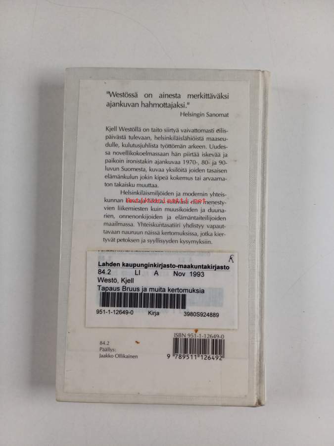 Tyydyttävä. Hieman kulumaa, selkämyksessä hieman vinoutta, kontaktimuovipäällystys, kirjaston poistokirja