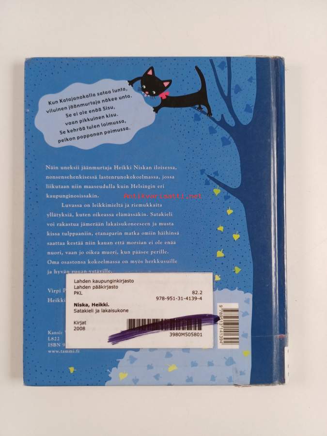 Tyydyttävä. Hieman kulumaa kansissa, selkämyksessä hieman vinoutta, kontaktimuovipäällystys, kirjaston poistokirja