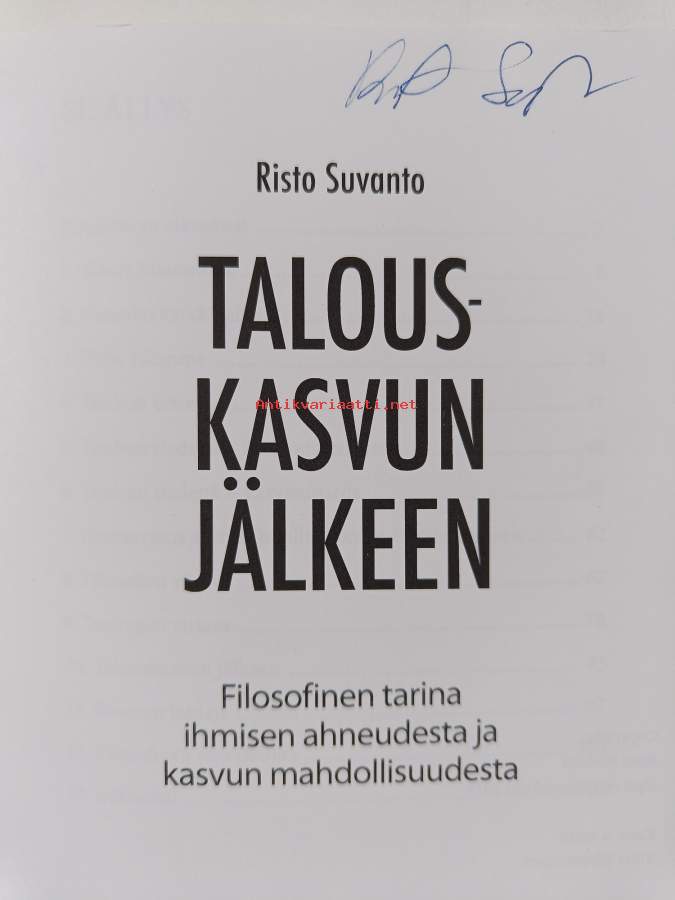 Talouskasvun jälkeen : filosofinen tarina ihmisen ahneudesta ja kasvun mahdollisuudesta (signeerattu)