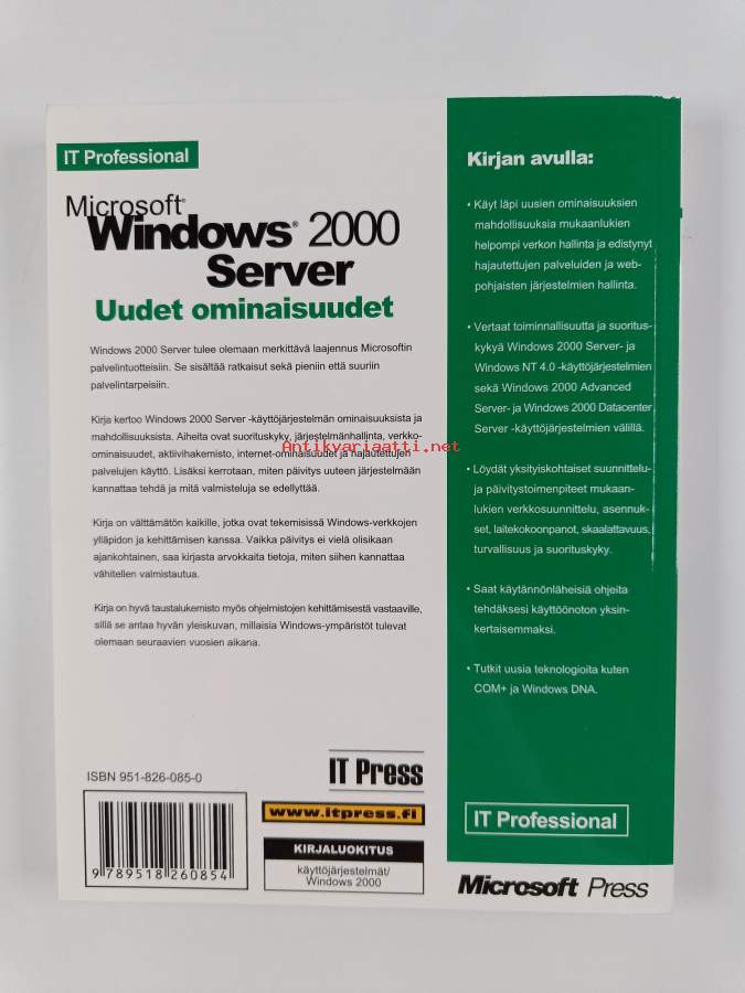 Muu(t) tekijä(t): Juha SamelaAlkuteos: Microsoft Introducing Windows 2000 ServerAsiasanat: käyttöjärjestelmät, Windows 2000