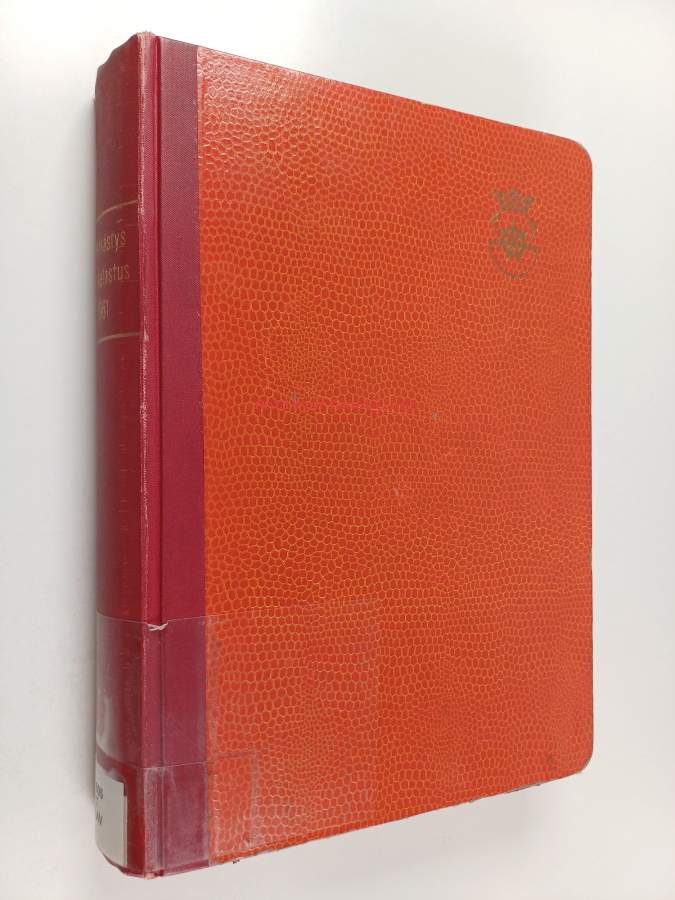 Tyydyttävä. Pientä kulumaa kansissa, selkämyksessä hieman vinoutta, jälkisidos (aikalaissidos, alkuperäiset nidotun version kannet sidottu mukaan), kirjaston poistokirja