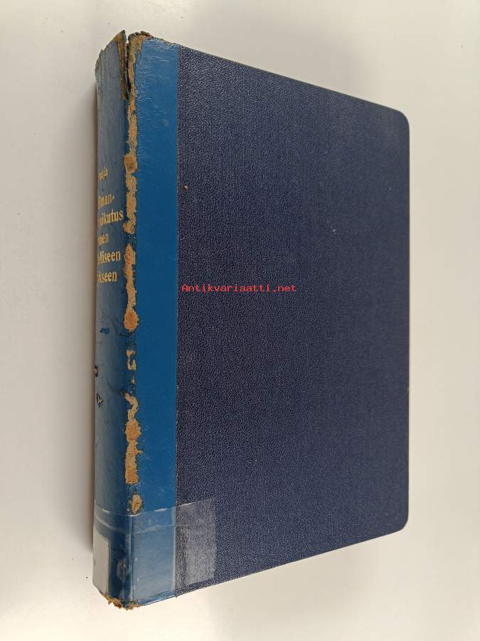 Tyydyttävä. Tarkempi kuntoluokka: K2+ ; Pientä rispaantumaa selkämyksessä, hieman kulumaa, hieman repeämää selkämyksen yläreunassa, kirjaston poistokirja