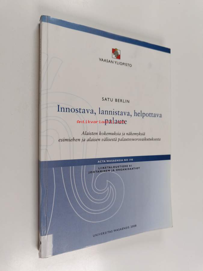Sarja: Acta Wasaensia no 198Asiasanat: työelämä, työyhteisöt, vuorovaikutus, esimiehet, työntekijät, alaiset, kannustus, työilmapiiri, palaute