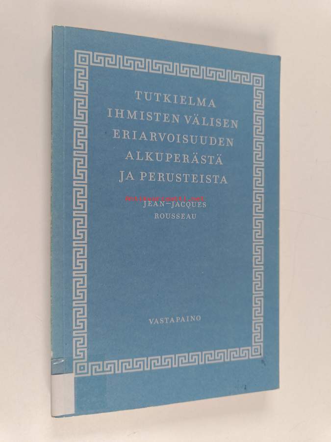 Alkuteos: Discours sur l'origine et les fondaments de l'inégalite parmi les hommesAsiasanat: ihminen, politiikka, kulttuuri, tasa-arvo, yhteiskuntakritiikki, yhteiskuntafilosofia, kulttuurifilosofia, eriarvoisuus, kulttuurievoluutio