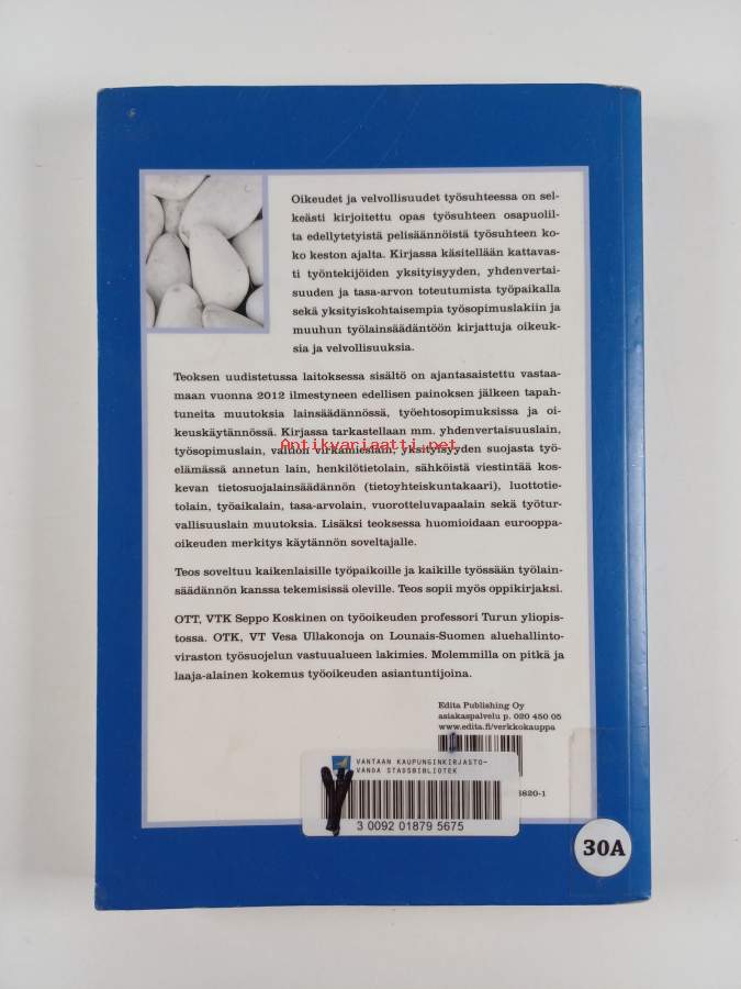 Muu(t) tekijä(t): Vesa UllakonojaAsiasanat: lainsäädäntö, työoikeus, oikeustapaukset, oikeudet, työsuhde, yhteistoiminta, työsopimukset, työehtosopimukset, työntekijät, työnantajat, työsuhdeturva, velvollisuudet, eläkkeet, työttömyysturva, määräaikaisuus, vahingonkorvausvastuu, lagstiftning, arbetsförhållande (anställning), arbetstagare, arbetsavtal, arbetsgivare, rättigheter, arbetsrätt, skyldigheter