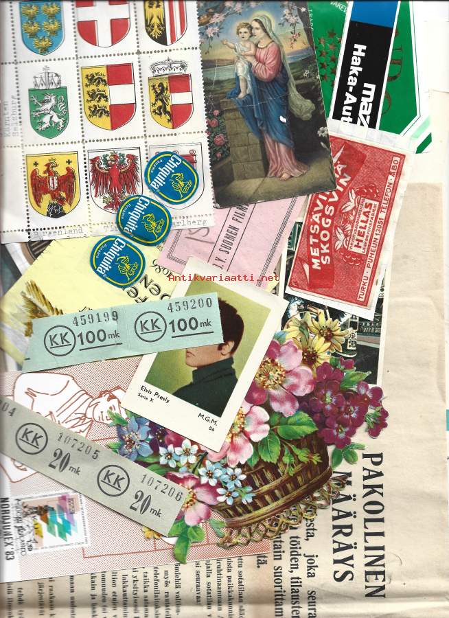 Sekal erä kortteja tarroja yms yli 20 kpl