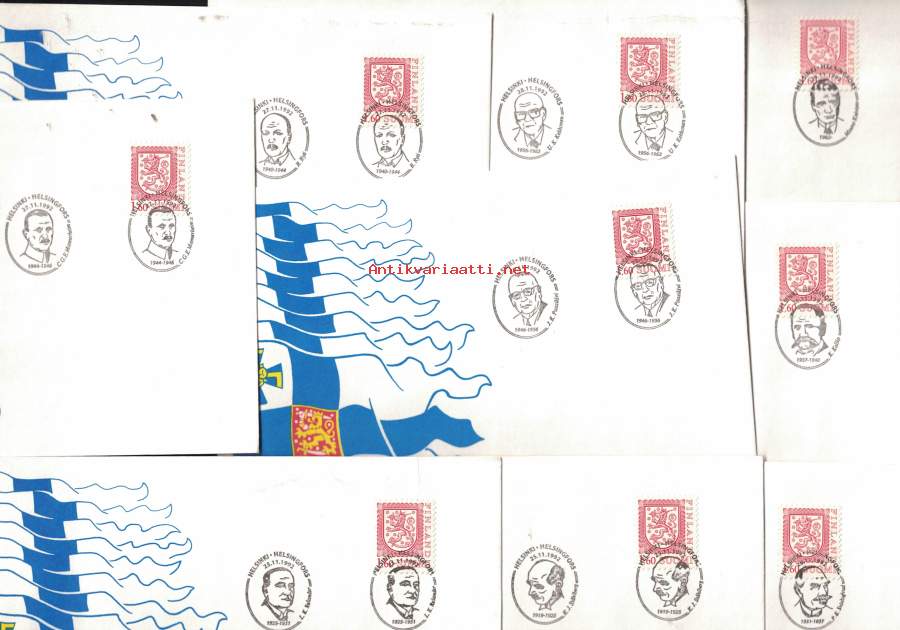 Tasavallan presidentin lippukuoret ja joka kuoressa presidentti erikoisleima 25.11.1992: -K.J. Ståhlberg-L.K. Relander-P.E. Svinhufvud-Kyösti Kallio-Risto Ryti-C.G.E. Mannerheim-J.K. Paasikivi-Urho Kekkonen-Mauno Koivisto-Pieni Helposti kuori
