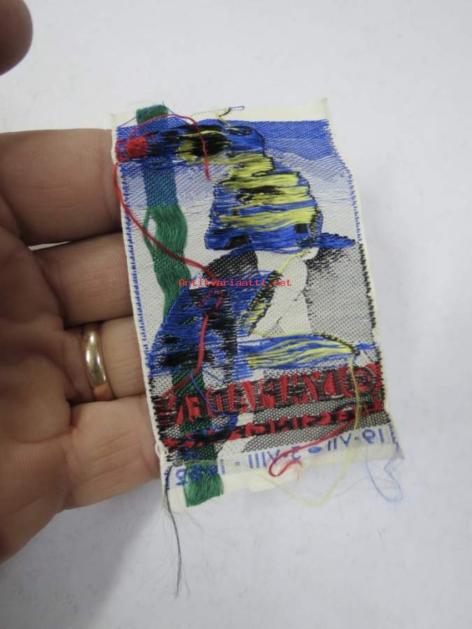 XV Olympiaden Helsingfors -kangasmerkki, merkissä kuvattuna Paavo Nurmi