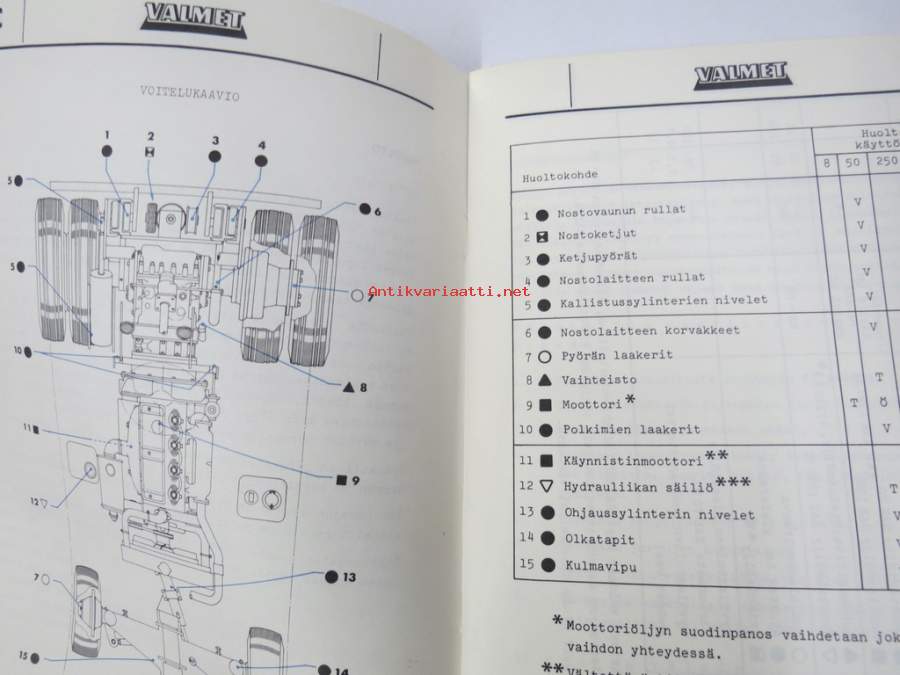 Valmet Toplift -rakenne, varaosat, ohjeita
