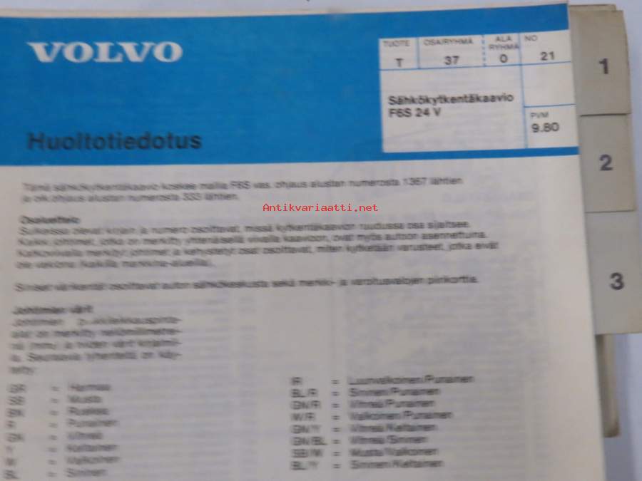 Volvo Huoltokäsikirja Vianetsintä Osa 9 (92) Pysäköintilämmitin Volvo 300 -korjaamokirjasarjan osa