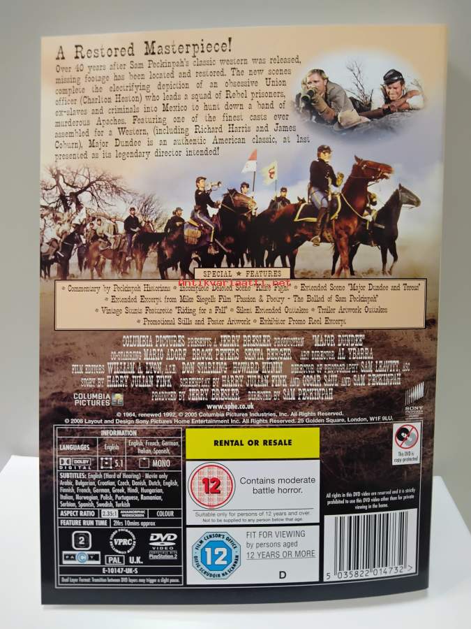 ohjaus Sam Peckinpah, Charlton Heston, Richard Harris, Jim Hutton, James Coburn, Michael Anderson jr., western, v.1964, 2h10min, suomitekstit, levy erinomainen
