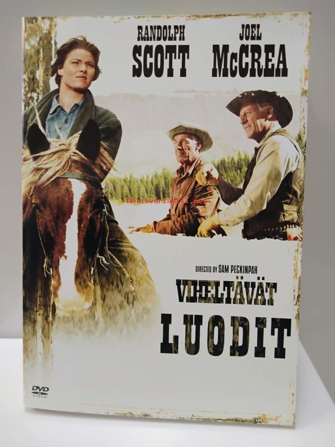 ohjaus Sam Peckinpah, Randolph Scott, Joel McCrea, western, v.1962, 89min, suomitekstit, levy hieman käytön jälkeä, käytetty hyväkuntoinen