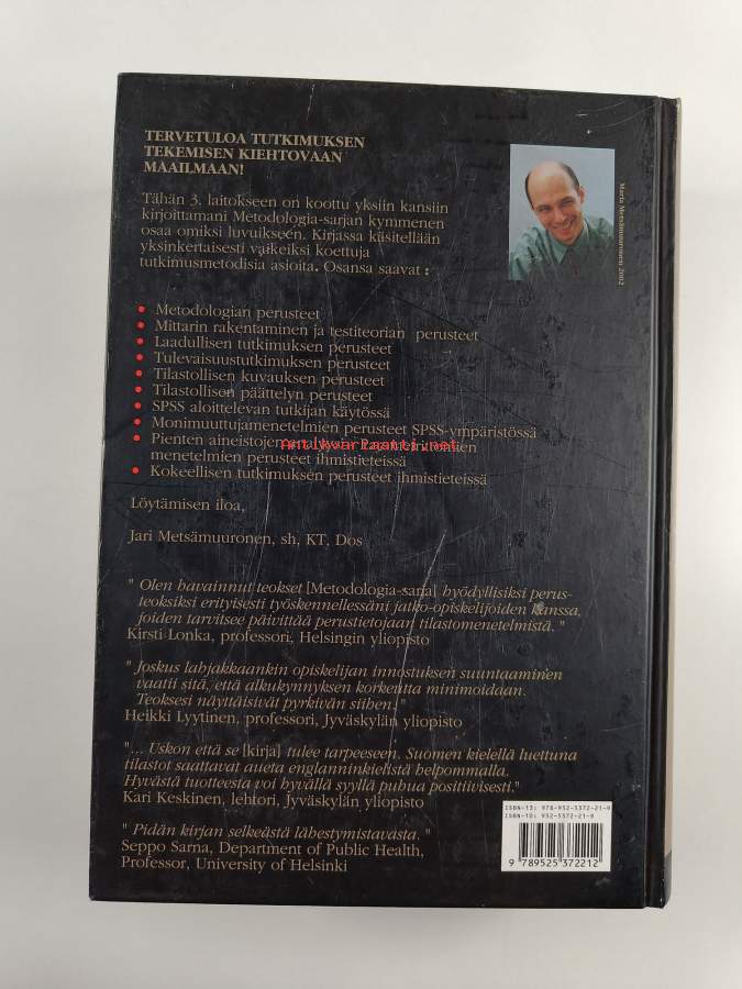 Merkinnät: omistajamerkintäAsiasanat: luotettavuus, tulevaisuudentutkimus, tilastotiede, havainnointi, päättely, testaus, tilastot, tutkimusmenetelmät, toimintatutkimus, kvalitatiivinen tutkimus, metodologia, graafinen esitys, haastattelututkimus, todennäköisyys, etnografia, tiedonlähteet, tutkimustulokset, tilastomenetelmät, oppaat (teokset), jakaumat, ihmistieteet, analyysimenetelmät, monimuuttujamenetelmät, otanta, empiirinen tutkimus, kvantitatiivinen tutkimus, mittarit (mittaus), psykometriikka, SPSS, faktorianalyysi, hypoteesit, kokeelliset menetelmät, mittausmenetelmät, reliabiliteetti, validiteetti, fenomenografia, grounded theory, korrelaatio, keskiarvot, regressioanalyysi, varianssianalyysi, frekvenssit, hajonta