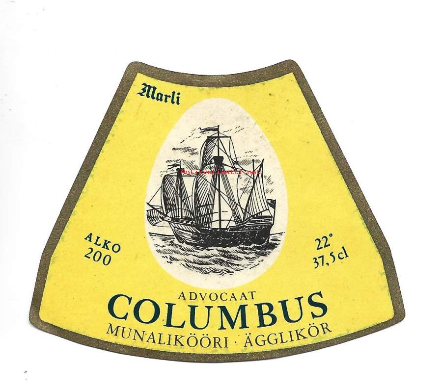 Columbus Munaikööri liköörietiketti viinaetiketti