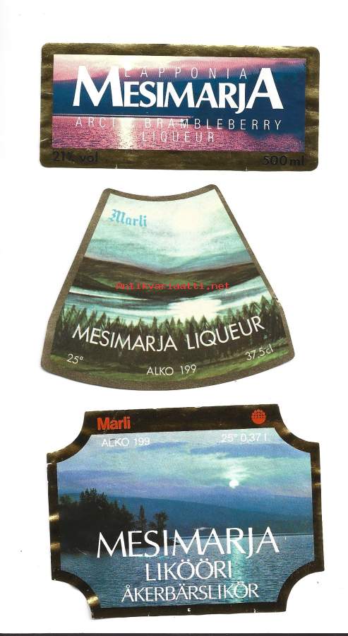 Mesimarja Likööri Alko nr 199 liköörietiketti viinaetiketti 3 eril