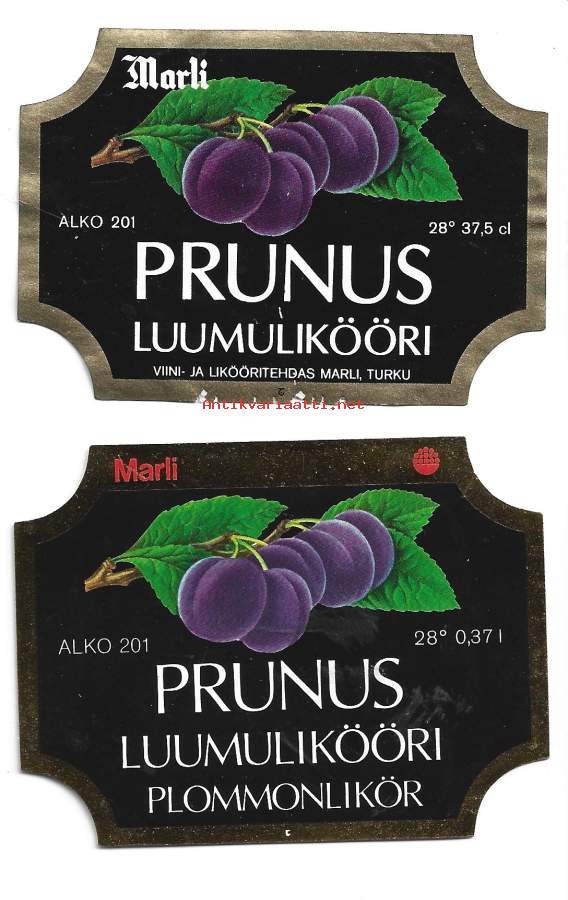 Prunus Luumulikööri Alko nr 201 liköörietiketti viinaetiketti 2 eril