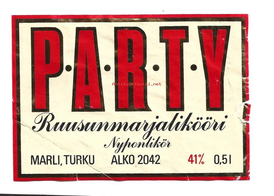 Party Alko nr 2042 liköörietiketti viinaetiketti